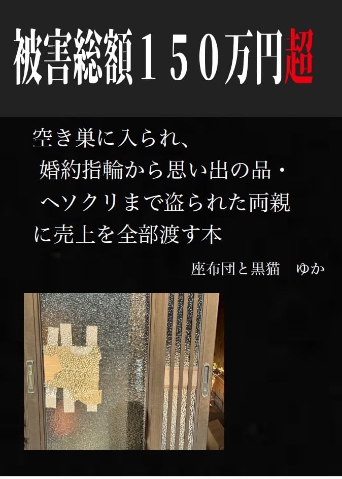 空き巣に入られ、婚約指輪から思い出の品・ヘソクリまで盗られた両親に売上を全部渡す本